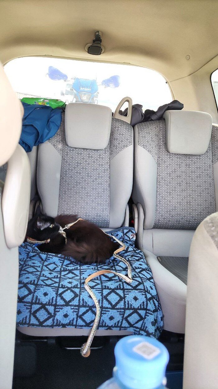 Дальше все более менее без происшествий прошло. Доехали до Варшавы, котюня вела себя хорошо.