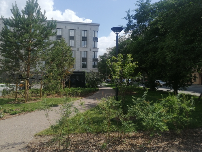 Снаружи успели облагородить территорию в модном нынче стиле - не знаю как называется, но в питере полно похожих новых парков и скверов.