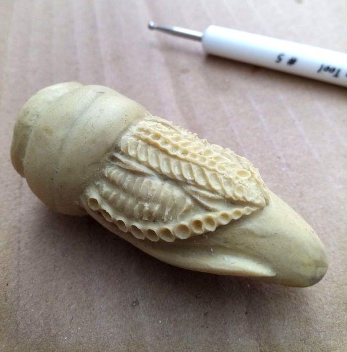 Моделька в процессе, размер около 6 сантиметров, корешок был отчикан.
