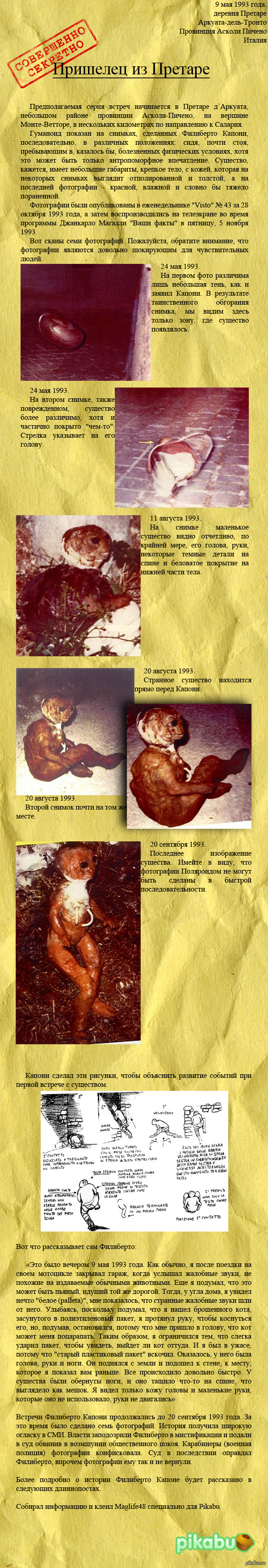 9 maglife48 Пришелец из Претаре 10 лет назад "Сначала я подумал, что это была маленькая кошка, которая словно бы жалуется, попав в полиэтиленовый пакет…" Показать полностью 1 Пришельцы НЛО Претаре Италия Люди в черном Инопланетяне Неопознанное Уфология Длиннопост