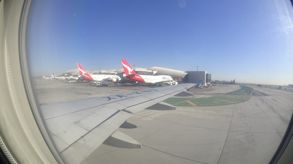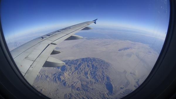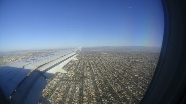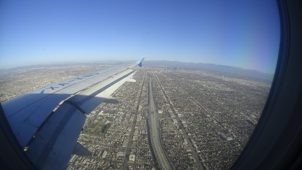 Полет проходит отлично, уже утро следующего дня! И вот мы начинаем идти на посадку и мы начинаем искать в иллюминаторах что-нибудь, что бы сказало нам, что вот, всё, мы в США, в Лос Анджелесе! И мы находим!