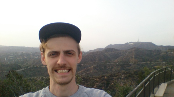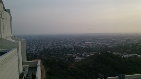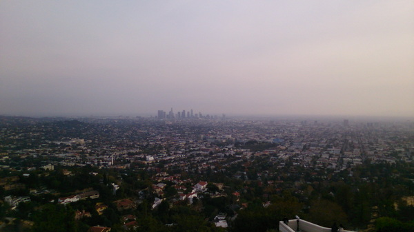 В дали можно разглядеть надпись HOLLYWOOD и даунтаун Л.А.