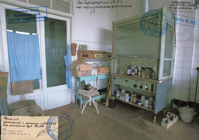 На кадрах представлена лаборатория, в которой в своетское время наше предприятие производило и изучало фосген (химическое оружие, а так же важное сырье в органическом синтезе)