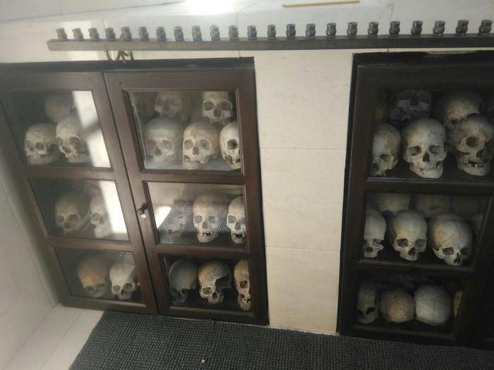 Таким образом, маршировали солдаты по факту на костях. Но, как показывает история, ни что не вечно под Луной, время Советов закончилось, и монастыри начали потихоньку восстанавливать. В конце 90х-начале 00 при работе на территории Спасо-преображенского монастыря было обнаружено много человеческих останков с бывшего кладбища, кои собрали и погребли вот таким вот способом по афонскому образцу.