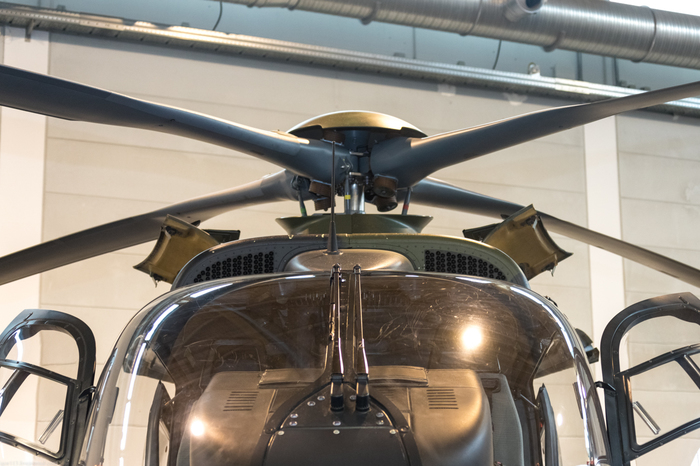 Компоновка вертолета традиционна для машин одновинтовой схемы - фюзеляж с длинной хвостовой балкой, зато несущая система достаточно необычна - четырехлопастный бесшарнирный несущий винт в комбинации с хвостовым винтом-фенестроном. Использование этой несущей системы в сочетании с аэродинамическим совершенством фюзеляжа позволило резко снизить шум, создаваемый вертолетом. Фюзеляж изготовлен, в основном, из сотовых конструкций на основе кевлара.