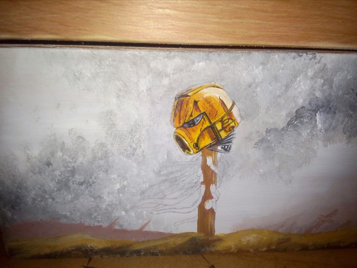 Где то в феврале этого года я уговорил жену расписать мне шкатулку. И работа началась. Вот так выглядела заготовка.