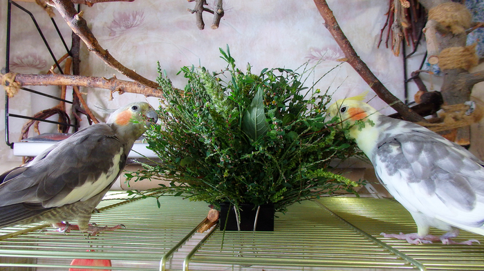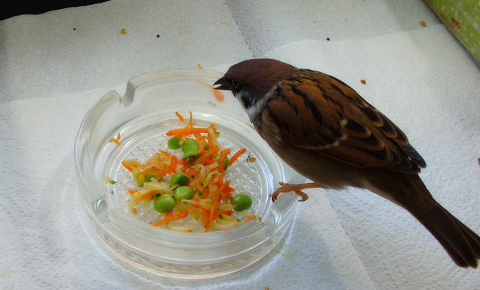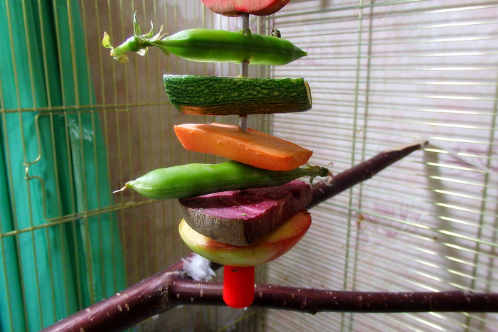 И сегодня птицы тоже не остались без зелени и других вкуснях.