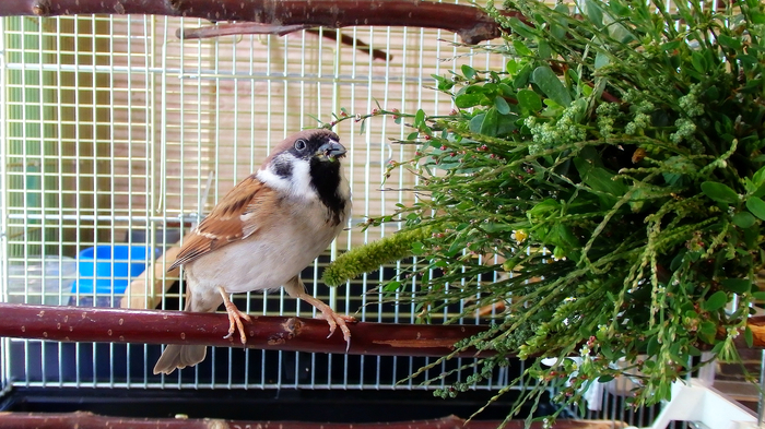 Птицы наедаются практически только семенами из колосков, метелок и бутонов, игнорируя зерносмесь.