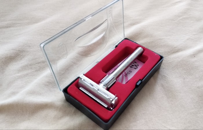 Интересно, как станок проявит себя в бритье. Хотя на кейсе и красовалась надпись stainless, по факту металлическим в нем было ручка и две крышки и гарда, остальное пластик покрашенный под хром.