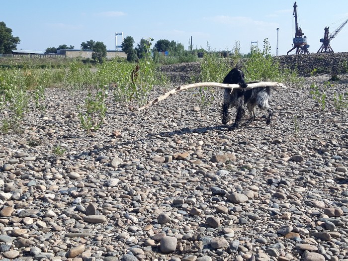 25 августа 2019 г., во время прогулки и купания была замечена большая палка, которая плавала в водоеме. Честером (10 мес.) было принято решение палку спасти!
