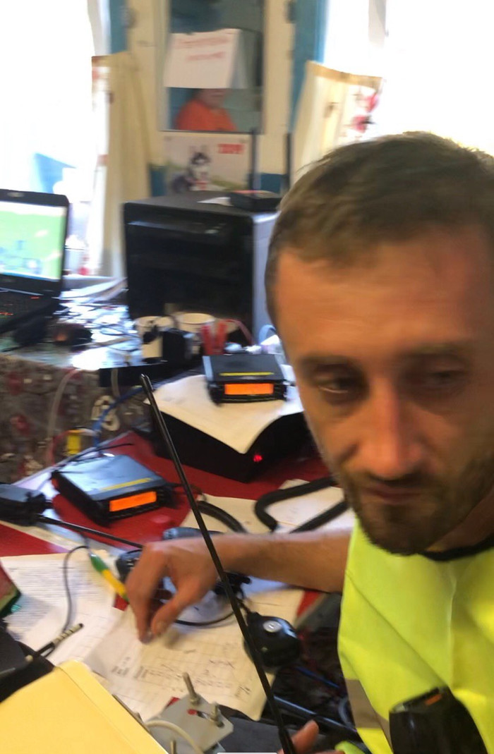 Серёга сидит и не отрываясь смотрит в монитор, на котором карта. Тамада, помощник координатора, жонглирует матюгальником и рацией, подменяя иногда связистов, время от времени достаёт ещё третьей рукой телефон.