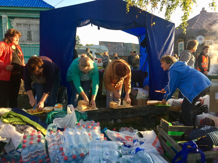Шла обратно к штабу, сделала фото: местные женщины вчетвером режут для нас хлеб. Это бесконечное для меня фото о доброте и маленьком подвиге каждого. Даже того, кто просто в 7 утра режет хлеб посреди маленькой глухой деревни, чтобы накрутить бутербродов нескольким сотням незнакомых людей.