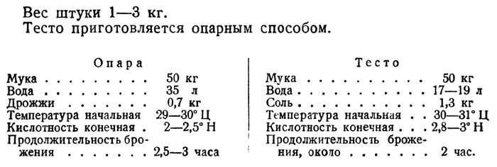 Рецепт на буханку весом 750 гр: