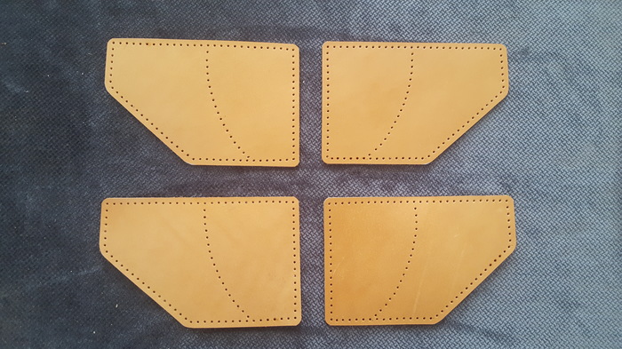 С формы удалось уже снять бумажные лекало, которые пришлось немного доводить по симметрии и после вырезались такие вот заготовки из кожи