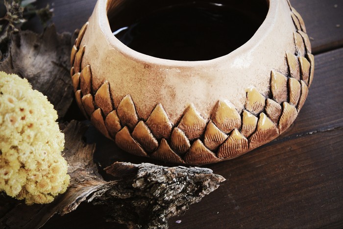 Ручная лепка, без гончарного круга и т.д. Роспись глазурями, пигментами.