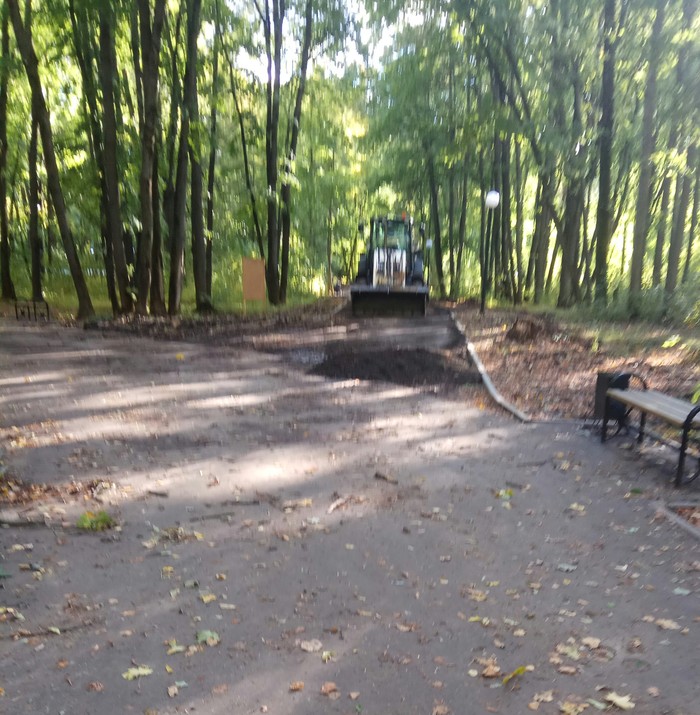 Итак, на сегодняшний день, в Орле, в парке Ботаника ведутся обширные (нет) работы. В том числе, кроме всех ништяков, в виде дополнительных площадок, лавочек и фонарей, нам пообещали новый красивый и блЯстящий асфальт, конечно. Вчера навезли множество куч старого(!) Асфальта. Вот таких.