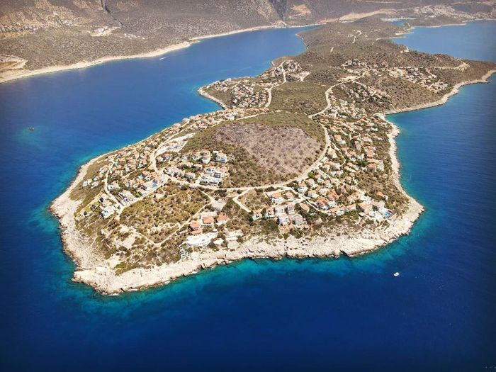 Интересно было проехаться по острову бочагей. Если в самом городе большинство номеров укладывались в 40-60 долларов за ночь, то тут верхнего предела можно сказать и не было. Я находил на букинге виллы за 10 тысяч долларов в сутки(!). Это космос по меркам Турции! Сверху похоже на базу повстанцев из звездных войн.