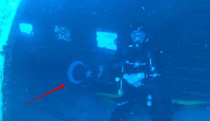 Удалось пару раз нырнуть с аквалангом. Смотреть на дне было особо нечего, но удивила страсть турков вешать везде портреты Ататюрка. Даже на дне моря, в затопленном самолете, был найден портрет этого легендарного (по крайней мере так считают большинство турков) человека.