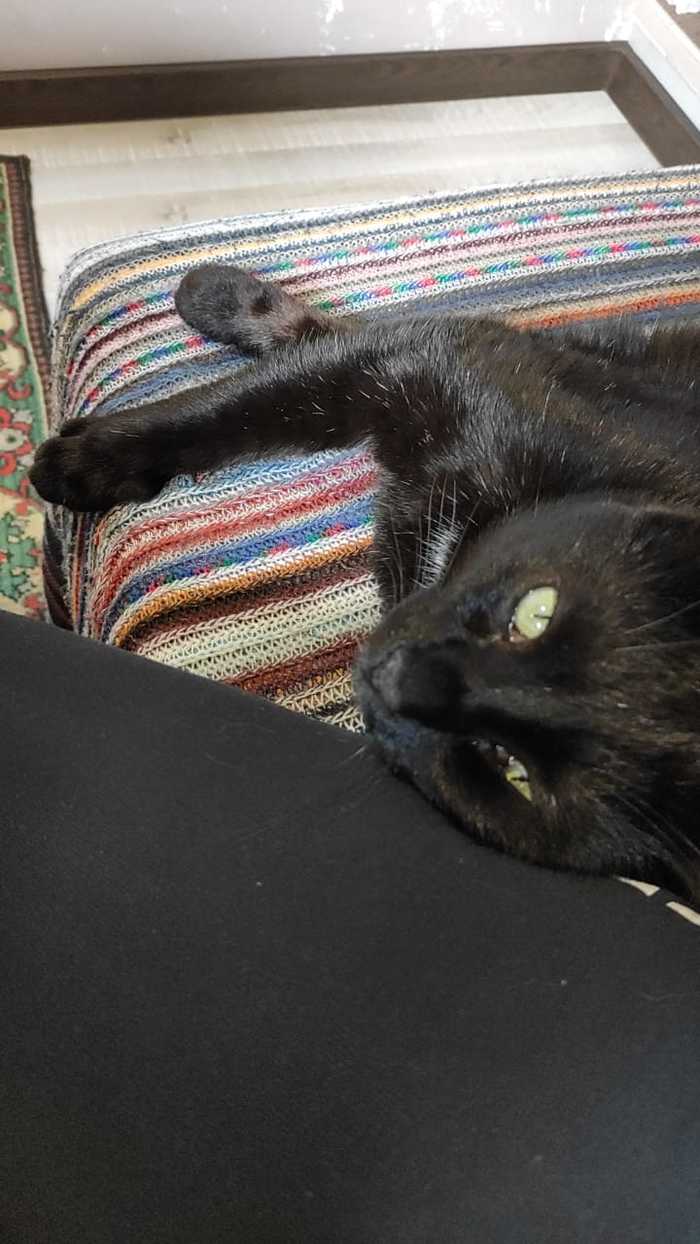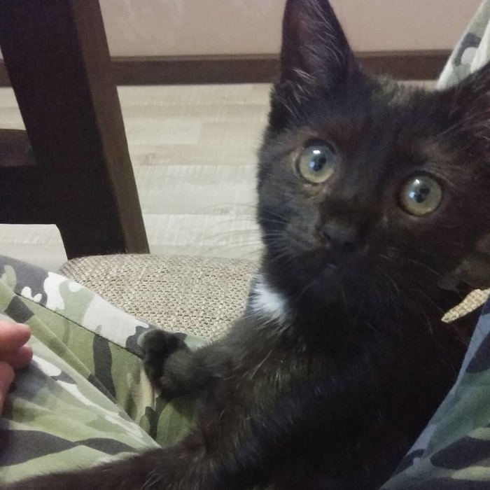 Парня я подобрал в парке Победы города Ставрополя. Ехал себе молча по велодорожке, вижу камушек, думаю надо объехать. Оказалось-показалось. Дальше как в сказке. В единственном луче света, пробившемся через листву, сидел котейка и пытался согреться. Гнулся в сырости, а как я подъехал, сразу ожил. Подскочил и стал орать! Жрать не особо хочет, сухарей ему знатно прохожие надовали. Ласки просит и понимания. Неловко залез на парковую скамью и как смог, спотыкаясь, выхаживал взад перед как по подиуму.
