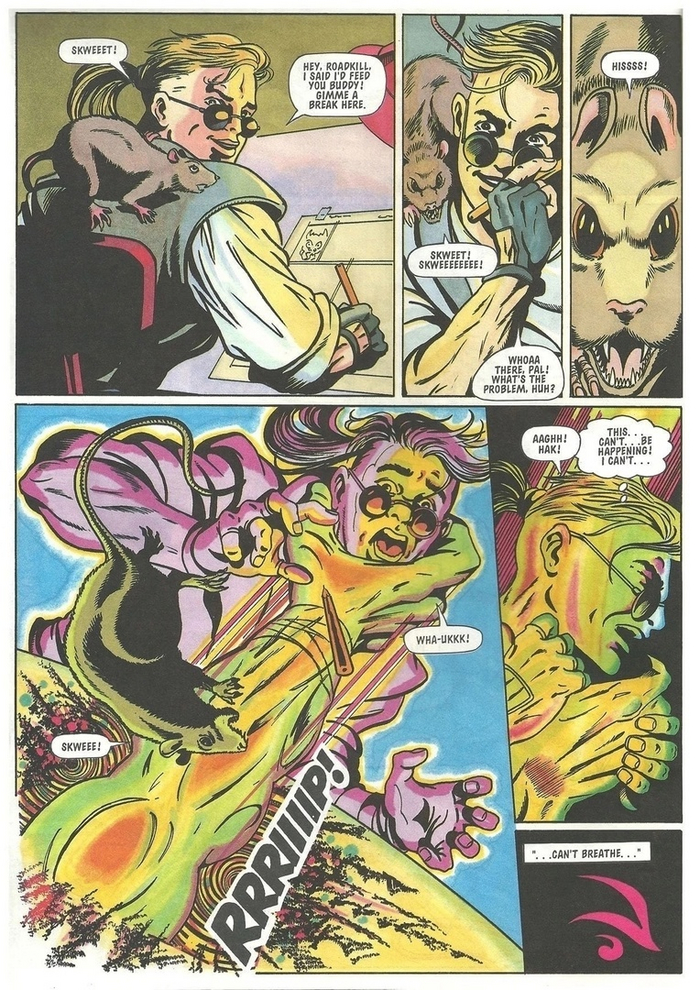 Бьём супостата ногами-руками-подручными средствами, используем предметы: метательный нож, динамит, ящики со взрывчаткой + наш верный друг (крыса - друг человека!) придёт на помощь. Крысу, кстати, зовут Роадкилл (Roadkill), это домашнее животное Скетча.