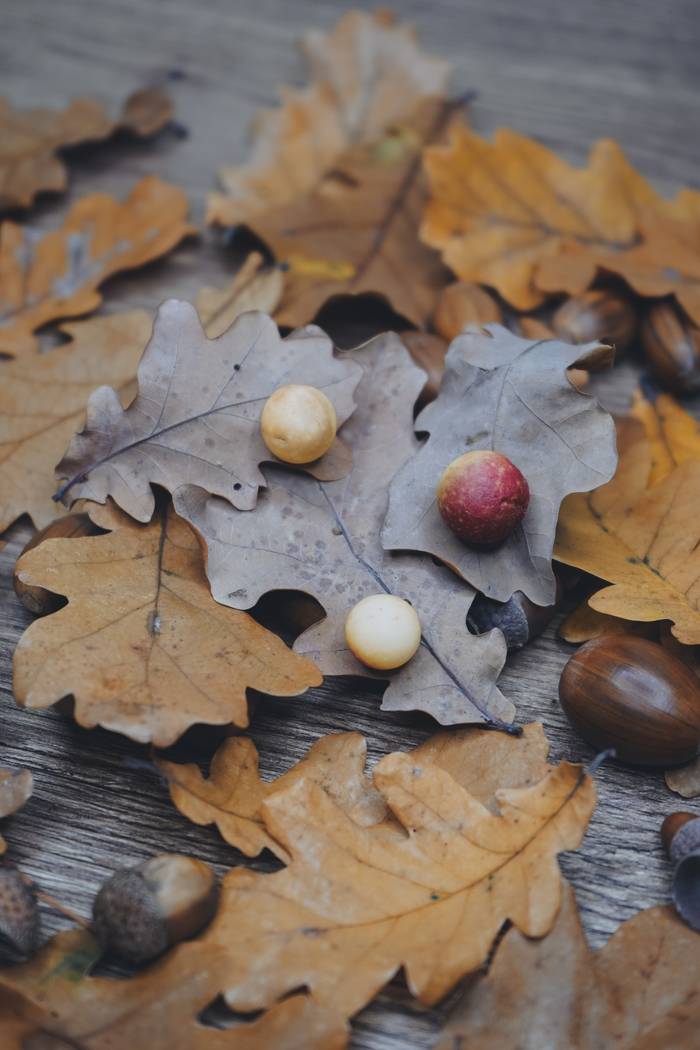 Честно говоря, я была уверена, что личинки уже стали взрослыми орехотворками и выбрались из своих домиков...оказалось нет. Если приглядеться, в средней галле (так называется эта штука) торчик кусочек жителя....