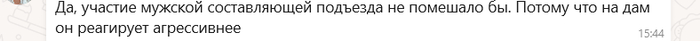 У нас в подъезде завёлся бомж. Дом недалеко от Белорусского вокзала, поэтому бомжей тут так то куча. И некоторые периодически забредают. Я несколько лет назад видел одного, спал на лестничной площадке выше моего этажа, я подошёл, потыкал его, живой ли. Вроде что то пробурчал, ок, выгонять не стал, мороз на улице был -15, человек всё таки. Но тут пару дней назад в домовом чате застенали местные кисы (а, чтоб вы понимали у нас в доме в центре Москвы в основном сообщество именно такое: бабушки которые тут живут со сталинских времён, пара квартир для киргизов, по 50 человек в квартире, но они тихие, ради справедливости и никого не тревожат и кисы, которым папик снял квартиру или купил и вот они тут царствуют) И вот несколько дней назад кто-то нассал около лифта. Может это бомж, может просто пьяный жилец. И вот тут началось...