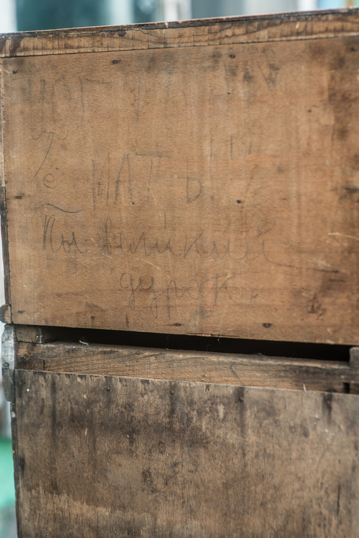 Сзади была обнаружена надпись карандашом "Йо**ть Те Мать! Ты великий дурак" что бы это ни значило... Надпись мы сохранили, закрепив лаком :) Карандаш графитовый, не химический.