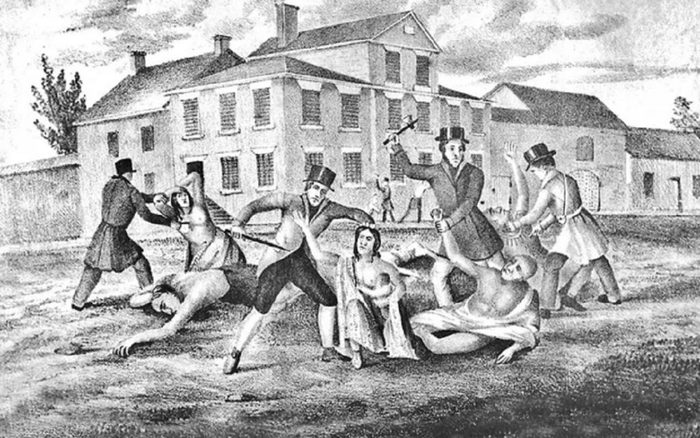 Утром 14 декабря 1763 года несколько десятков вооруженных мужчин из городов Пакстон, Донегал и Хэмпфилд напали на спящих индейцев в поселке Конестога в 90 с лишним километрах к западу от Филадельфии. Деревушку спалили дотла, сонные холмы Пенсильвании окрасились в цвет крови. Шестерых аборигенов жестоко убили, четырнадцати удалось укрыть в близлежащем Ланкастере, но 27 декабря еще более крупная банда из Пакстона ворвалась на склад, где прятались индейцы, и порубила их на кусочки.