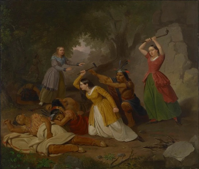 Картина Юниуса Брутуса Стернса «Ханна Дастон убивает индейцев» 1847 года