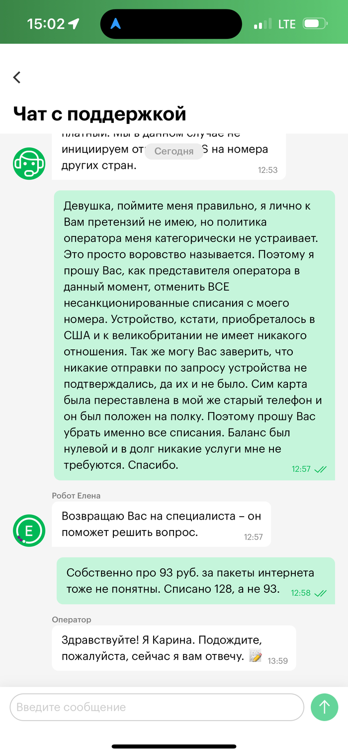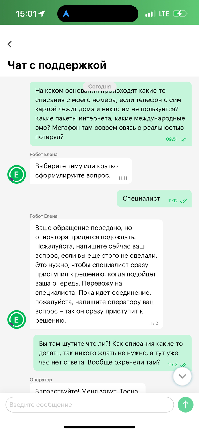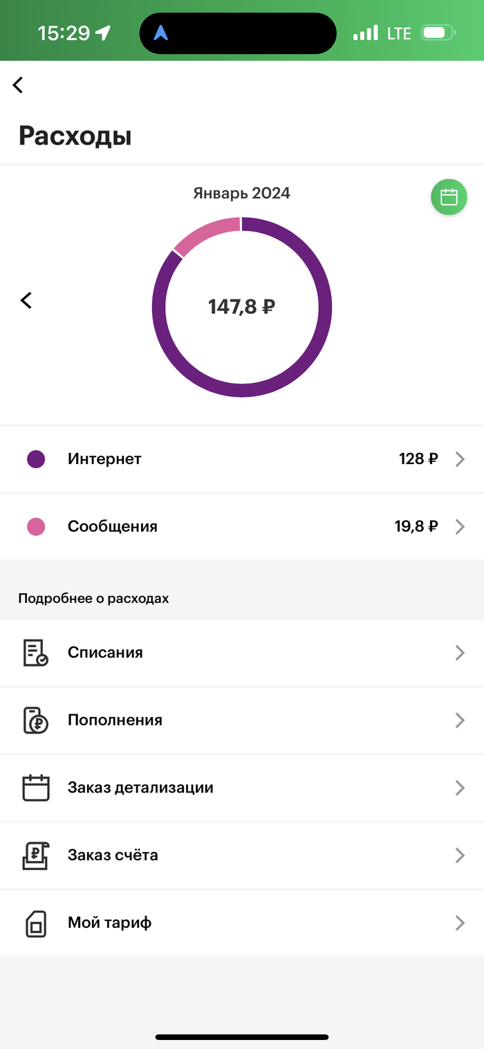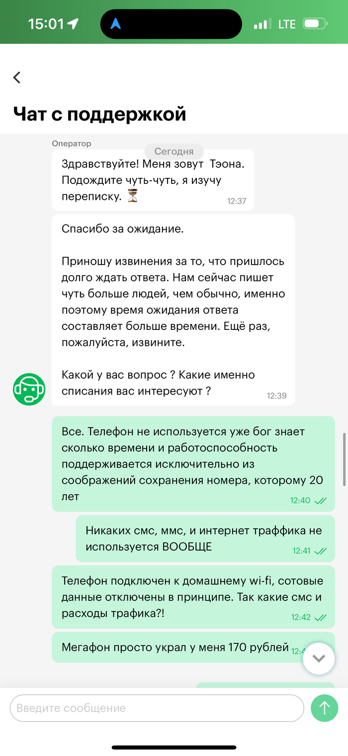 Моему мегафоновскому номеру аж 20 лет исполнилось, примерно 5-6 лет назад, когда этот двухцветный козел начал включать свою безмерную жадность в тарифах и самовольно перекраивать условия и наполнения тарифа под оправдания его «архивности», я ушел к другому опсосу (тоже те еще ухари, но всё таки лайтовее), а симку вставил в старый телефон и бросил на полку, просто чтобы не терять номер. Само собой, что всё было отключено, тариф переведен на поминутный без всяких наполнений. Все эти годы никаких вопросов не возникало, симка активна, списаний и расходов нет. А тут, внезапно, после сообщения от автоответчика, вхожу в приложение и вижу такое: