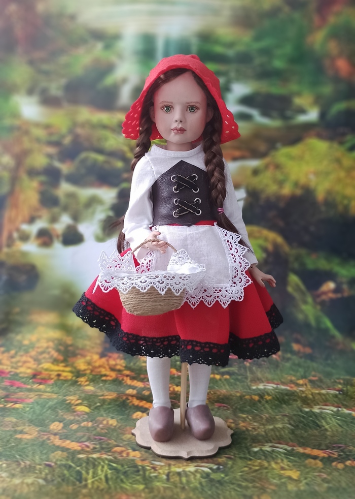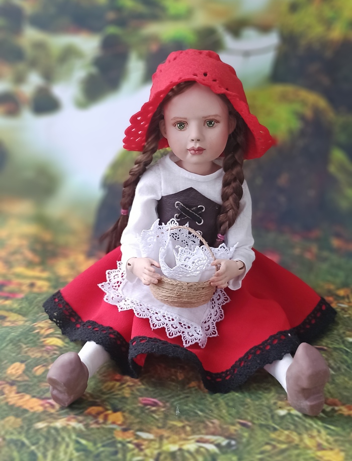Красная Шапочка шарнирная фарфоровая кукла ручной работы
