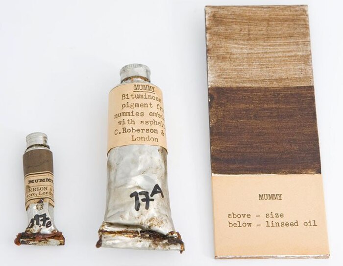 Могли пустить древнюю бедолагу на краску! Да, да был такой цвет назывался mummy brown. Мумиево-коричневый цвет, также известный как египетский коричневый. Это был насыщенный коричневый битумный пигмент с хорошей прозрачностью, между жжёной умброй и сырой умброй. Пигмент изготавливался из плоти мумий, смешанной с белой смолой и миррой. Мумибраун было чрезвычайно популярно с середины восемнадцатого по девятнадцатый века.