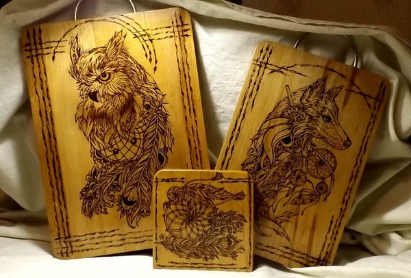 Купил как-то разделочные доски из бука. Копался как-то в интернете и наткнулся на необычные картинки. Купил какой-то выжигатель, старую модель, Искра 1980 года выпуска - переделал под себя. Достал из загашника выжигатель ещё древнее Искры, а именно ДВ-2 1969 года выпуска - переделал, опять же под себя...и вот что получилось из досок.