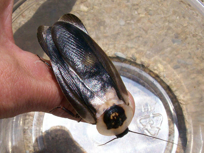 К вопросу о питании. У всех таракашек оно достаточно разное. Некоторых держат дома, как домашних животных. Например, мадагаскарских шипящих. Они живут до 5 лет, вырастают до 6 см и питаются исключительно фруктами и растениями. Называют шипящими, потому что они шипящие. Умеют шипеть в случае опасности. Буквально. Кому-то вот котики, а кому - Grompadorhina portentosa. Или, вот, Blaberus craniifer - Мёртвая голова. Назвали так в честь рисунка на панцире. Иногда вырастает до 8 см, жрёт опавшую листву. В целом, мирные парни и никому не вредят.