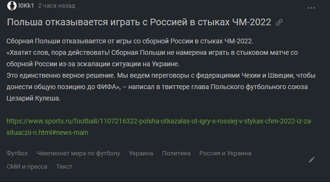 Польша отказывается играть с Россией в стыках ЧМ-2022