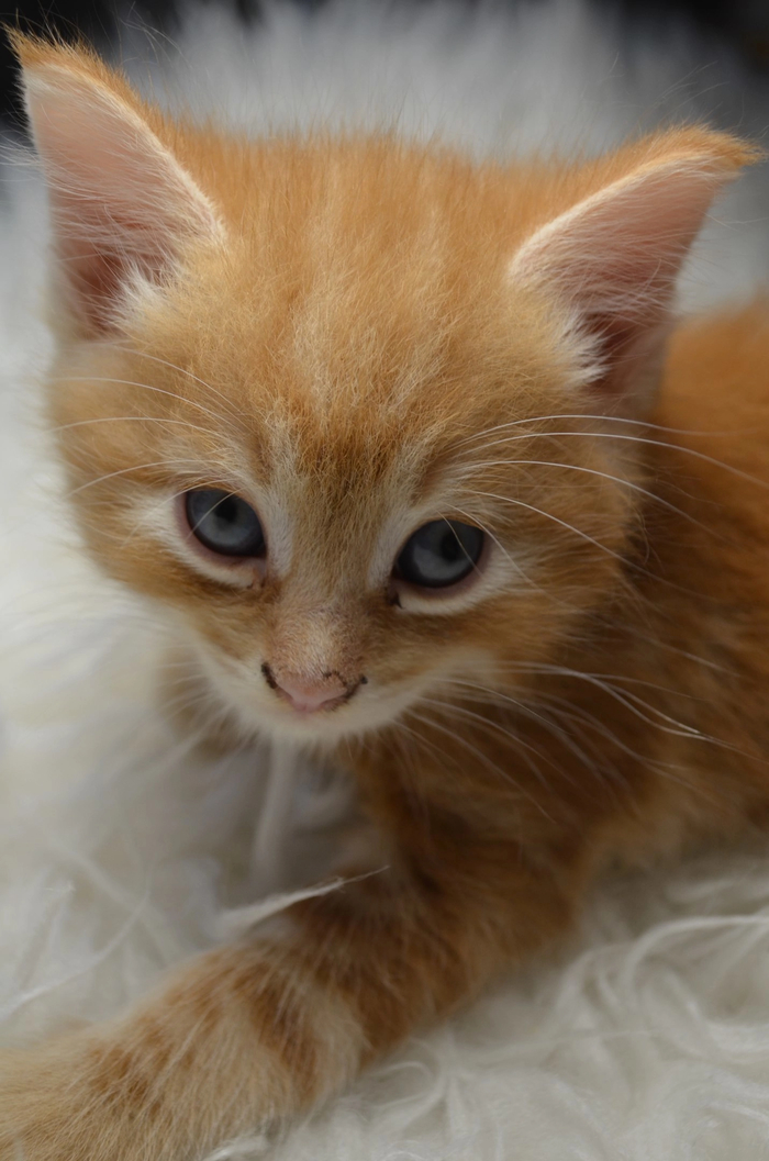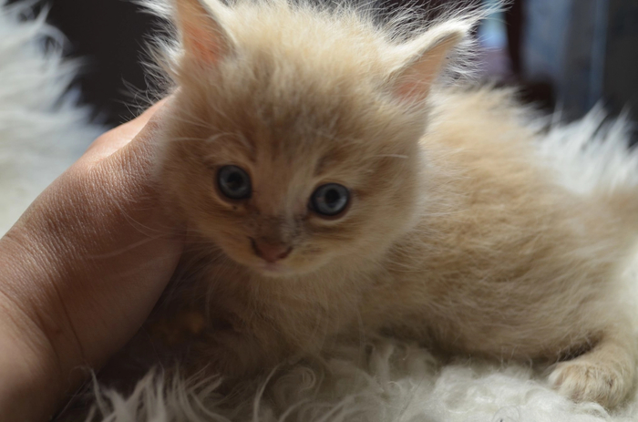 Персик - мохнатое желтоглазое чудо. Пушистый красавец с роскошной шубкой оттенка топлёного молока. Он был самым милым и красивым среди сестёр и братьев, но это не помогло ему найти дом.