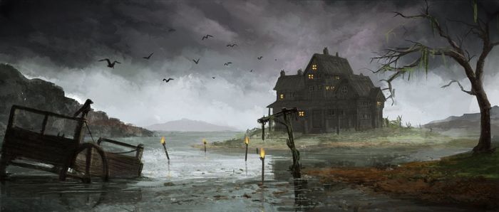 Внутри дома было достаточно просторно, в холле стояло несколько старых и потертых, но добротных кресел, когда-то давно они стояли наверное очень больших денег, и стойка, за которой стояли двое управляющих. Взрослого и крепкого мужчину с повязкой на глазах звали Норман, а его друга - лысого, но с густой рыжей бородой дварфа Вольфганг. Они встретили нас как долгожданных гостей, накормили жареной курочкой с гарниром и предложили нам остановиться здесь на ночь. В ходе беседы Вольфганг рассказал, что их таверна называлась не просто так, а из-за того, что под мостом, что находился неподалеку, был древний сундук с сокровищами (он появился здесь задолго до постройки этого дома), а тот, кто хотел его открыть - мгновенно был убит и утащен под воду неизвестным чудовищем.