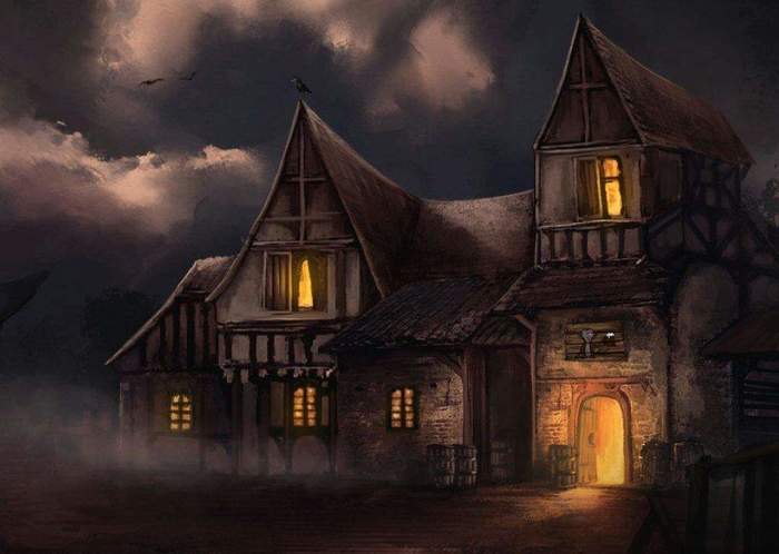 За весь день пути мы абсолютно никого не встретили и уже ближе к вечеру добрались до одинокого постоялого двора с интересным названием “Чудовище под мостом”. Более менее ухоженный трехэтажный дом с несколькими скатными крышами стоял возле небольшой реки.