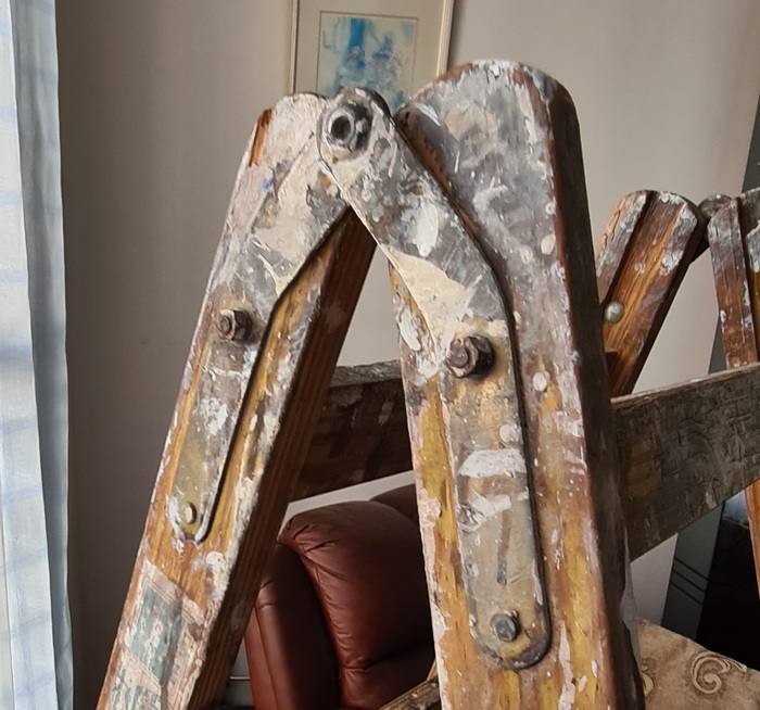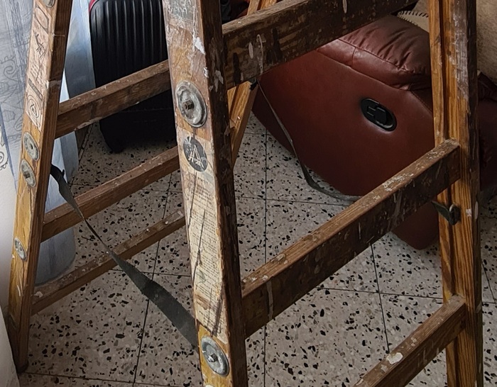 При должной сноровке стремянка используется как ходуля для перемещения вдоль стены не слезая с неё.