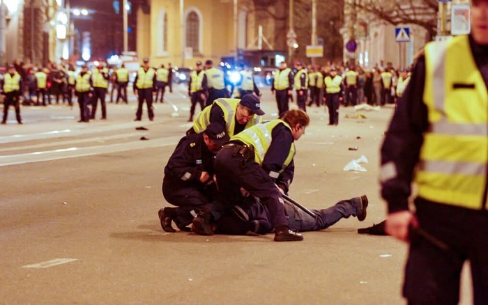 Вечером 26 апреля центр Таллинна превратился в арену противостояния: тысячи людей вышли выразить своё возмущение. Начались массовые беспорядки, столкновения с полицией, задержания. Магазины были разграблены, киоски подожжены, по улицам шли дым и слезоточивый газ. В результате погиб молодой человек — Дмитрий Ганин, а сотни людей были арестованы.