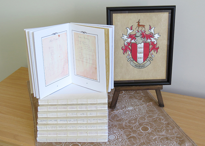 Разумеется, переплет этих книг далек от совершенства, но, для уровня моих знаний и навыков (мною за всю жизнь переплетено всего несколько блокнотов), считаю результат вполне сносным – все-таки освоен новый вид форзаца, уголки из ткани получились аккуратными, а все «ляпы» с клеем, к счастью, пришлись на ту копию, которая останется у нас дома. Впрочем, родственники всегда снисходительны к рукодельным подаркам от «своих», тем более, что делались книги с любовью и уважением к семейной истории.