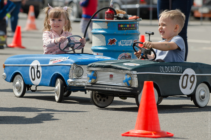 На площадке работало несколько детских зон. Все развлечения были направлены на знакомство детей с миром автоспорта и правилами безопасности на дорогах.