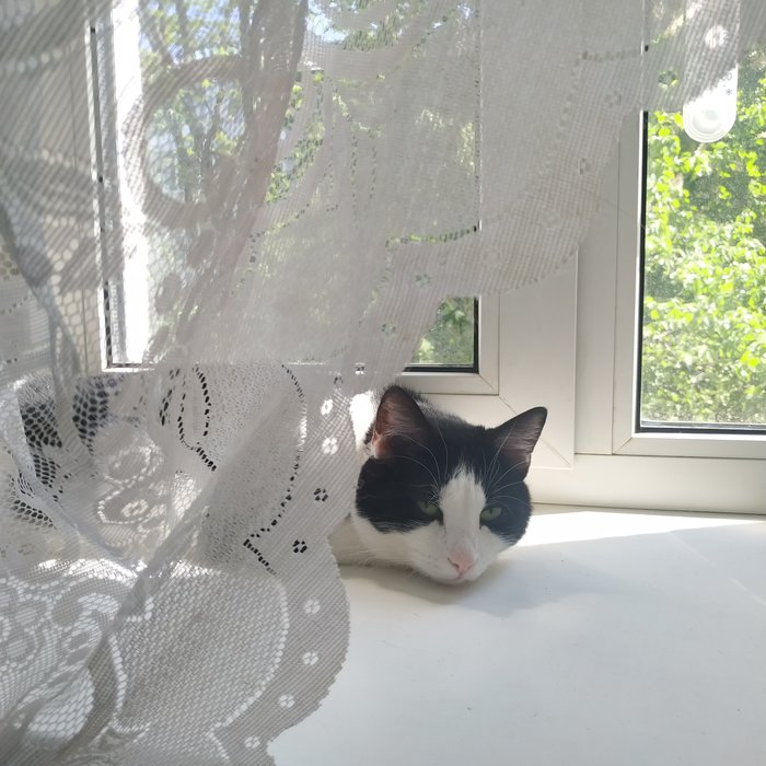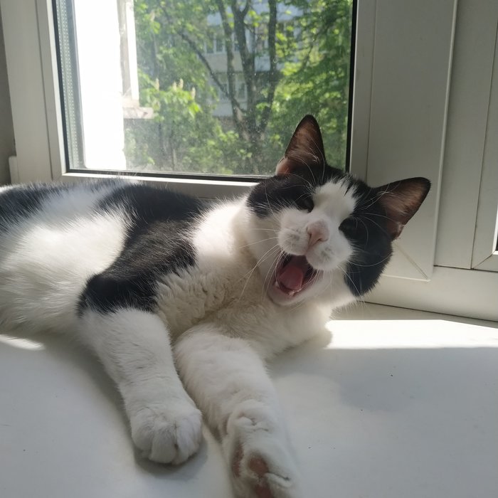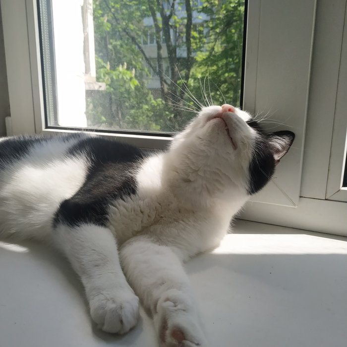 Кота зовут Усик. На передержке у моей мамы 3й год. Он с радостью ластится ко всем людям, но не навязывается.