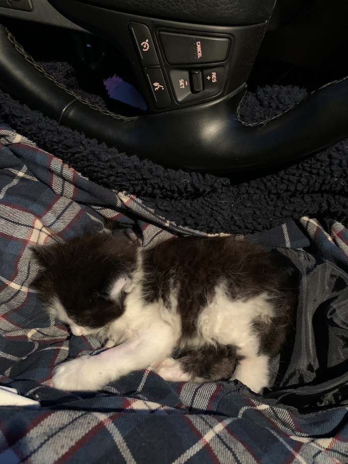 Я уехала от неё очень поздно ночью, так как сидела с Бимси, кормила ее и наблюдала за ее состоянием. В 7 утра уже отправляла видео состояния котёнка врачам стационара и нашему терапевту. Нам не нравилось как она часто дышит. Потом Вика переложила Бимси в переноску к малышам, она пригрелась, выровняла дыхание, успокоилась и уснула.