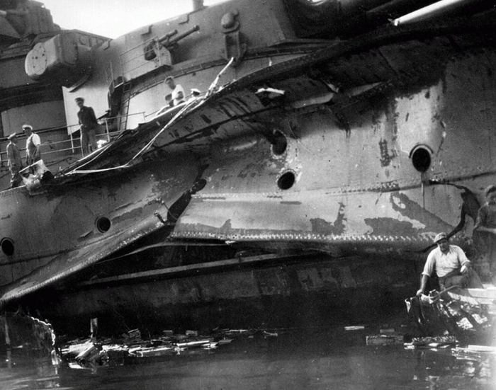 Повреждения линкора Dunkerque после битвы в Мерс-эль-Кебире