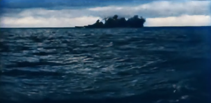 Bismarck ведёт огонь по крейсеру HMS Hood. Кадры из кинохроники, снятой кинооператором Рейхсминистерства пропаганды с борта Prinz Eugen