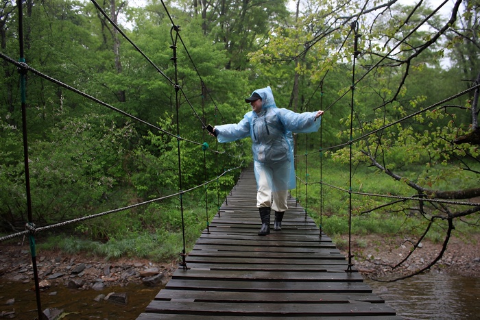 Путь был сложным: дождь бил прямо в лицо, подвесной мост, по которому шли ребята, шатался от ветра. Создавалось ощущение, будто кто-то наблюдает за участниками экспедиции. Уровень тревоги повысил найденный ребятами череп оленя − животного, которым питаются тигры и дальневосточные леопарды. Через какое-то время ребята увидели, как вдали что-то шевелится. Кто-то смог разглядеть, что это была пара оленей. Но, тем не менее, безопасность превыше всего − рядом с оленями могли прятаться и крупные хищники − поэтому участники экспедиции быстро вернулись к началу тропы.