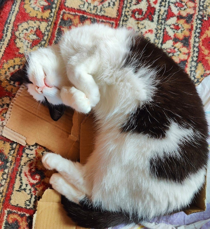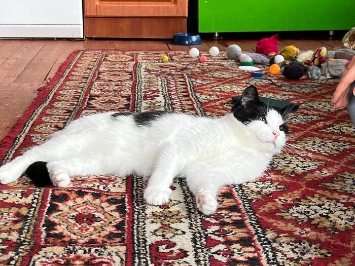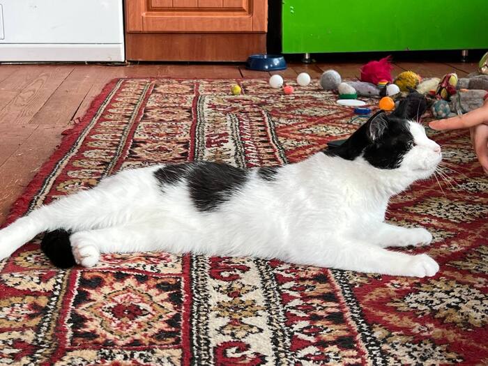 Всем привет от самое ласкового и доброго в мире кота Санатория. Когда я болела, он был со мной 24/7. Мне кажется, это вообще единственный кот, который любит меня не за еду в моем доме. Для него лучше любой вкусняшки, залезть ко мне на руки или под одеяло, там лежать, мурчать и обниматься. Такое вот сокровище просто болталось у супермаркета.