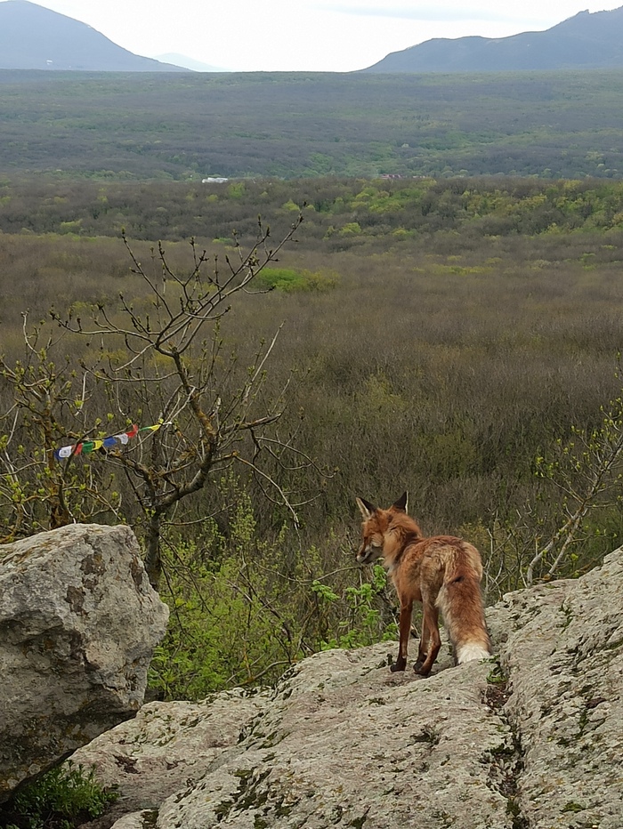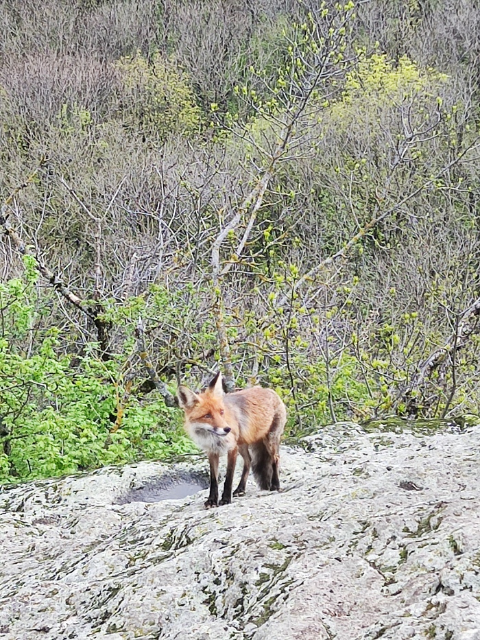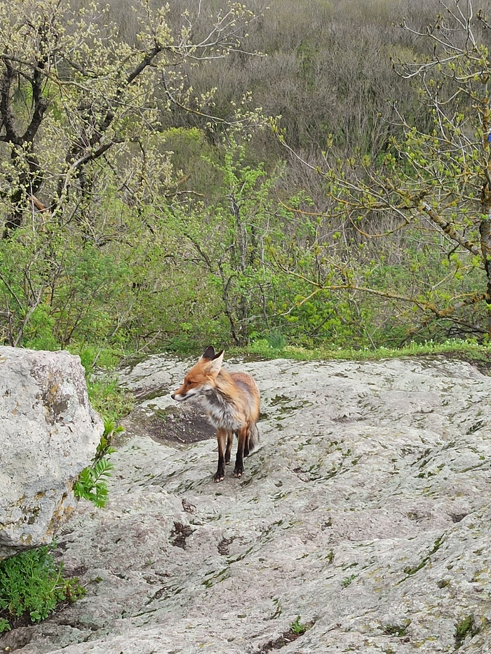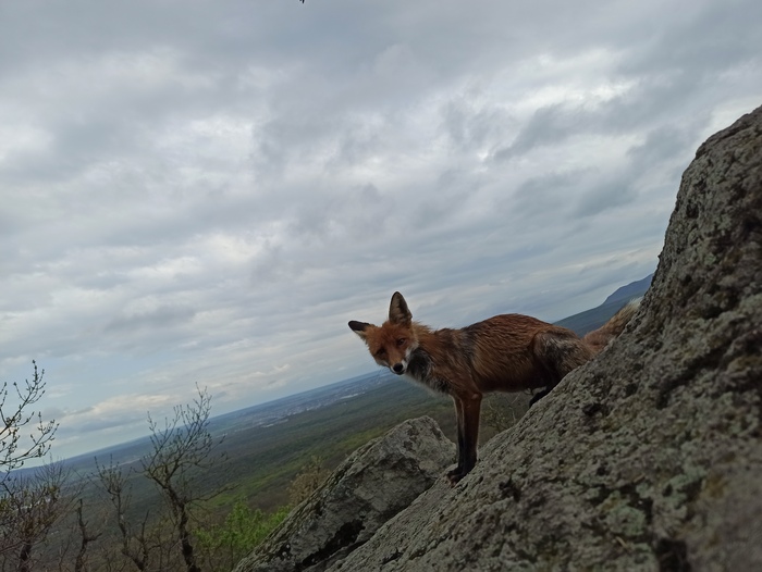 В Железноводске на Селитряных скалах познакомились с очень решительной лисой.