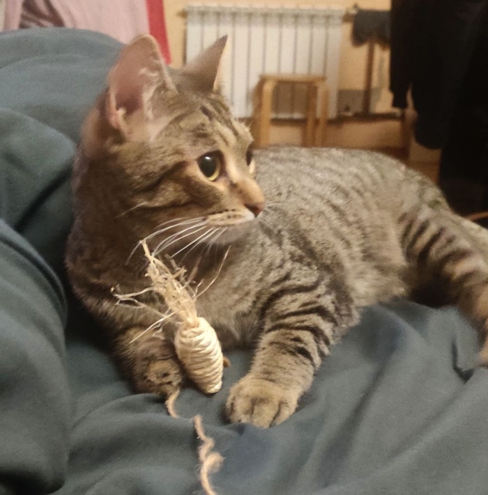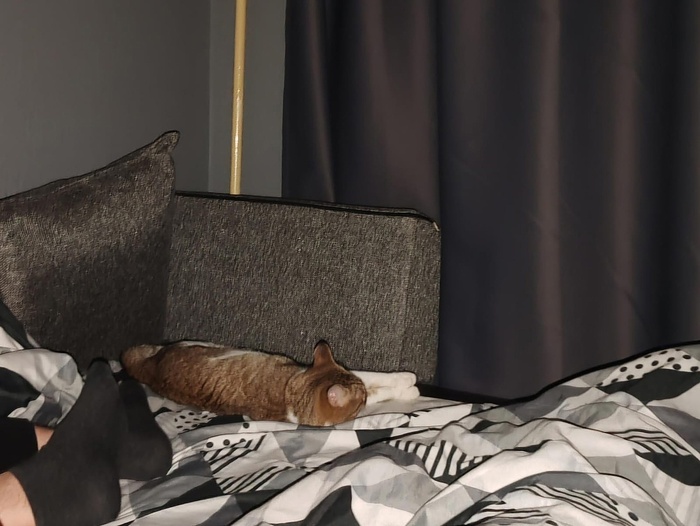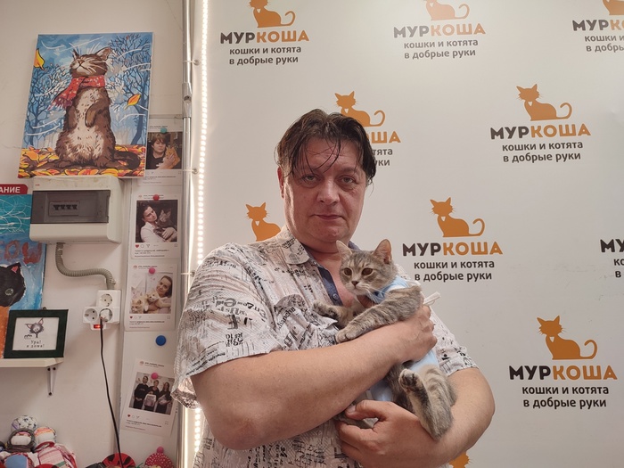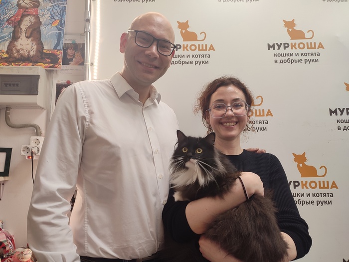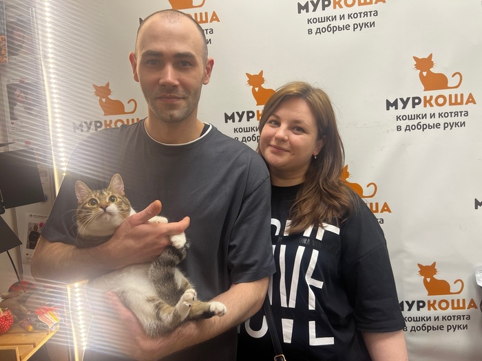 «Котичка хорошо переночевал. Вчера дома очень удивил нас в хорошем смысле. Мы выделили ему отдельную комнату, как вы и говорили. И через минут 40 он сам вышел из укрытия, всё обошёл, обнюхал и сам пришел гладиться. Дал всем себя почесать, помурлыкал.